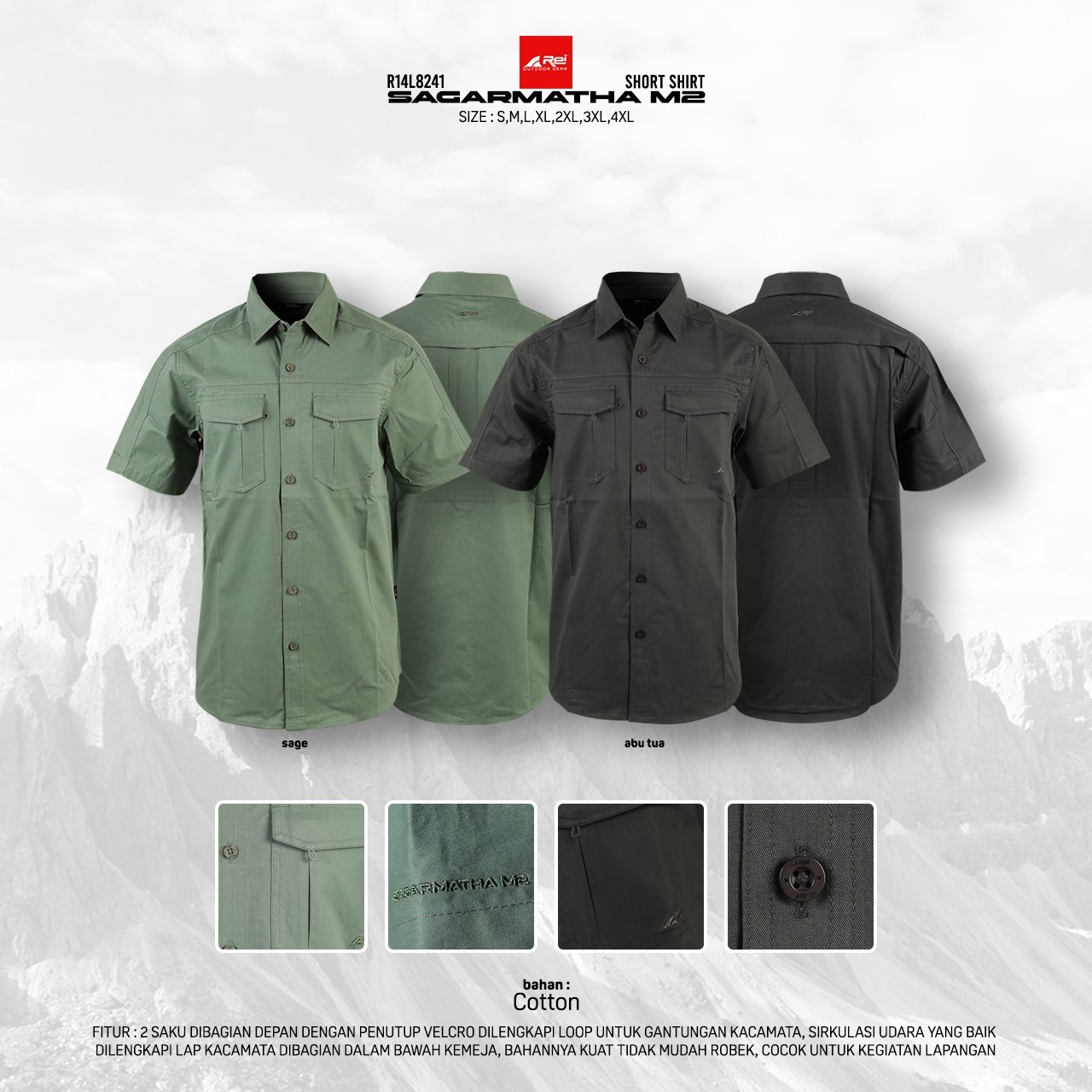 – 2 Saku di bagian depan dengan penutup velcro dilengkapi loop untuk gantungan kacamata